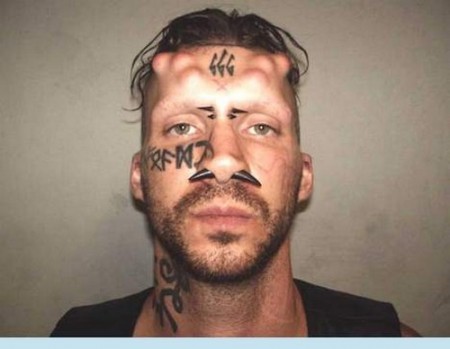 In mid-September 2011 both the Daily Mail, the Morning Sentinel and Norwegian VG described this beautiful horned gentleman by the name of CAIUS VEIOVIS as a Satanist. Charged alongside two others of the murders of three Hells Angels in the United States, he surely looks and acts the part of a devil worshipper. What is interesting is that the media focus on his religious claims as the unstated cause of his antisocial behavior rather than the fact that he is also a prospect of the Hells Angels, acting on order from his chapter leader to prevent a key witness to give evidence in court. Nevertheless, in the case of Caius, the satanic belief IS self-declared and apparently taken seriously; at his first trial back in 2000 when he was called Roy Gutfinsky, Jr., he described himself as a “satanic worshipper” and vampire. So we have to acknowledge that the Satanism articulated here might go beyond mere surface and directly to legitimize extreme transgressive behavior.